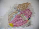 This is my recreation of Netter's illustration of a mitral commissurotomy from the Ciba collection. My mentor had lent me the book when I joined the lab as a lab technician and science illustrator. It was my first time using acrylic paints (I typically only draw with pen or pencil) so it was fun to try out a new medium. I gravitated towards drawing this illustration because of how legible the shape and structure was; I also love the heart. In general, Netter's illustrations convey such a grounded sense of what you are studying. I only did the easy part by recreating his illustration while he created the composition.